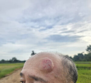 車から降りようとすると、ドアを靴の後ろで引っ掛け、おでこから地面に落ちてしまいました。